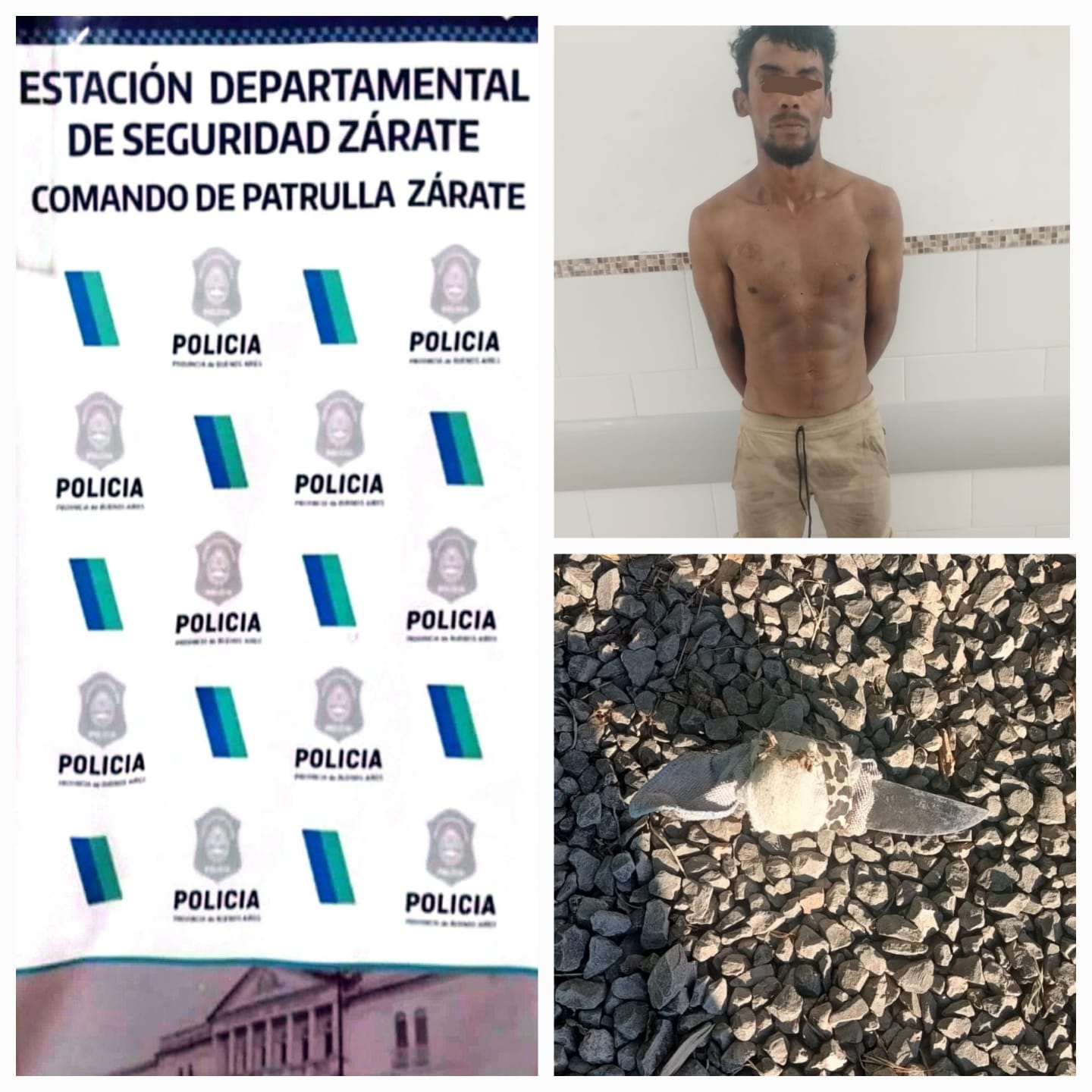 ZÁRATE– Personal del Comando Patrulla de Zárate aprehendió en Pavón y Santa Fe a un sujeto de 28 años que escapaba corriendo hacia las vías del ferrocarril tras apuñalar a un joven de 23 años tras una discusión familiar.