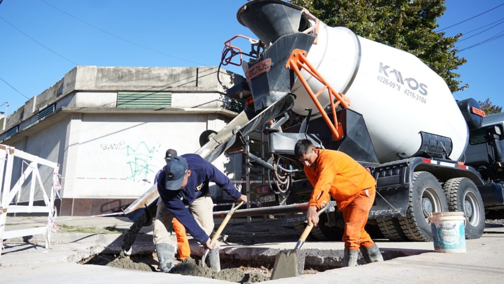 Las tareas consisten en la colocación de hormigón para la reconstrucción de la calzada, con la finalidad de reconstruir el pavimento dañado permitiendo recuperar la vía pública para que los vecinos puedan transitar en óptimas condiciones.