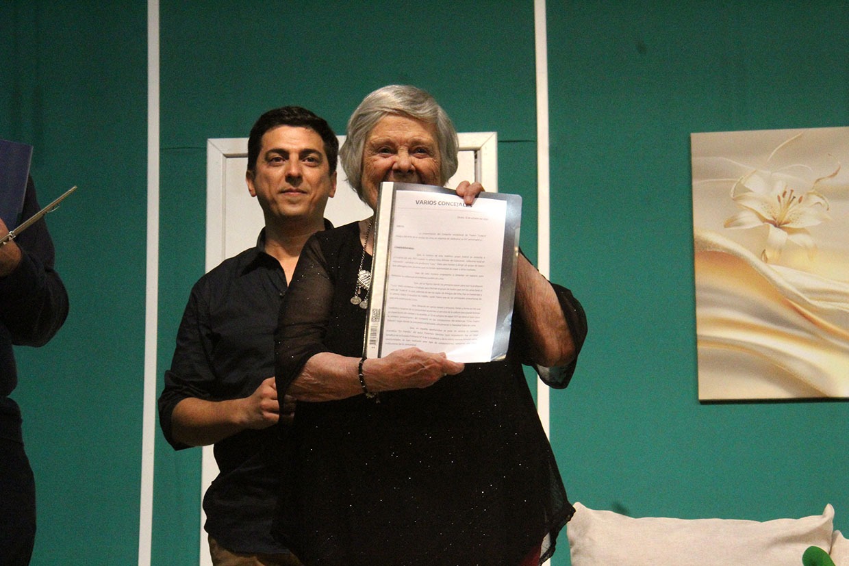 En ese sentido en el estreno de su nueva comedia, el Concejal Lucas Castiglioni, las concejalas electas Ana Almirón y Gabriela Moreyra junto al referente de la Agrupación 20 de Noviembre le entregaron a Lucy Melo una copia del proyecto de Propato y una resolución del Concejo Deliberante que declara de interés legislativo la obra.