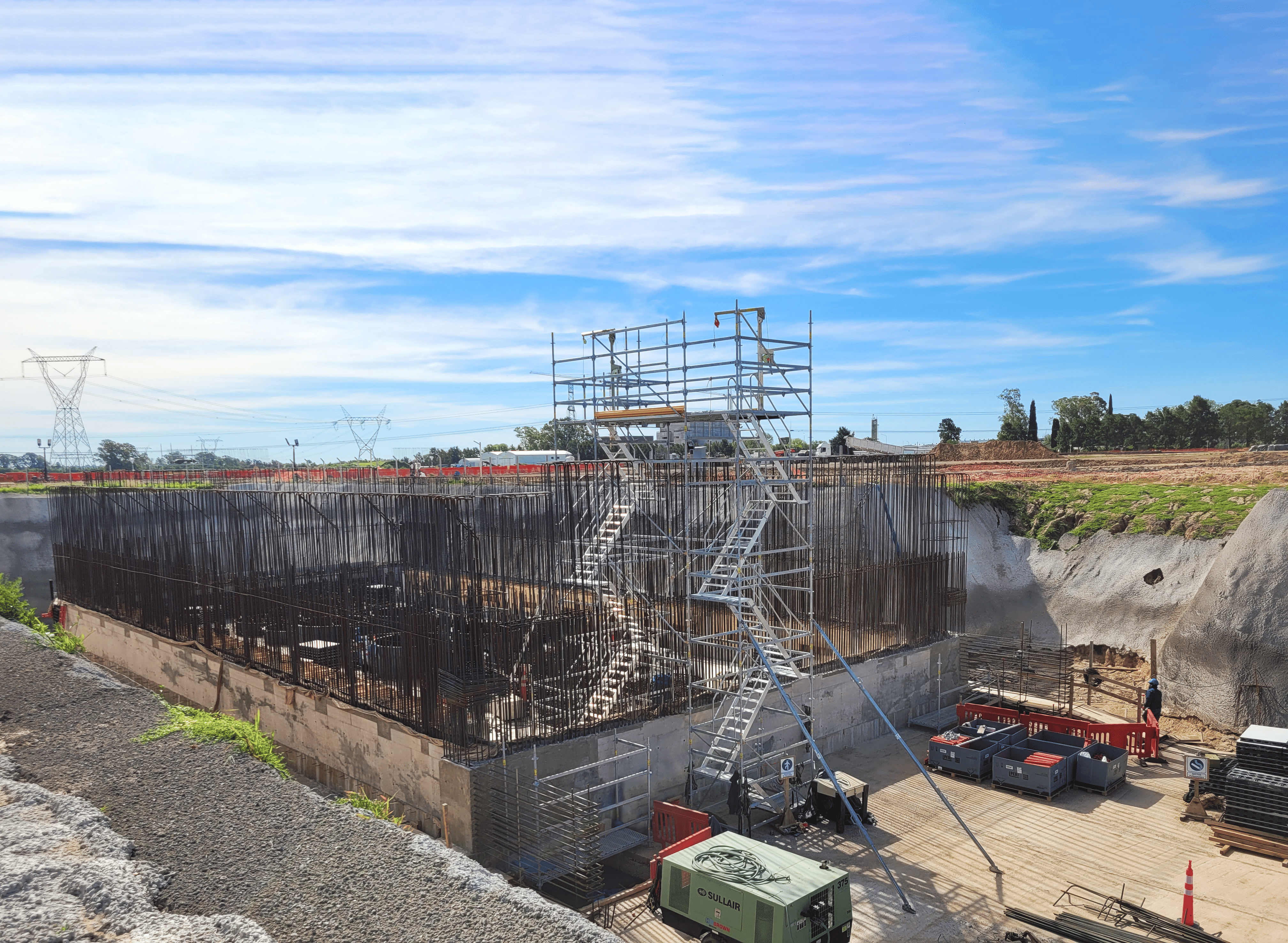 Actualmente, el proyecto presenta un importante grado de avance. Ya se completaron obras civiles relevantes, entre ellas la base de hormigón de alta resistencia sobre la que se ubicarán los silos, y se avanza en la fabricación de los componentes del sistema de almacenamiento, como los contenedores, tapas blindadas y estructuras metálicas que aseguran el confinamiento del material.
