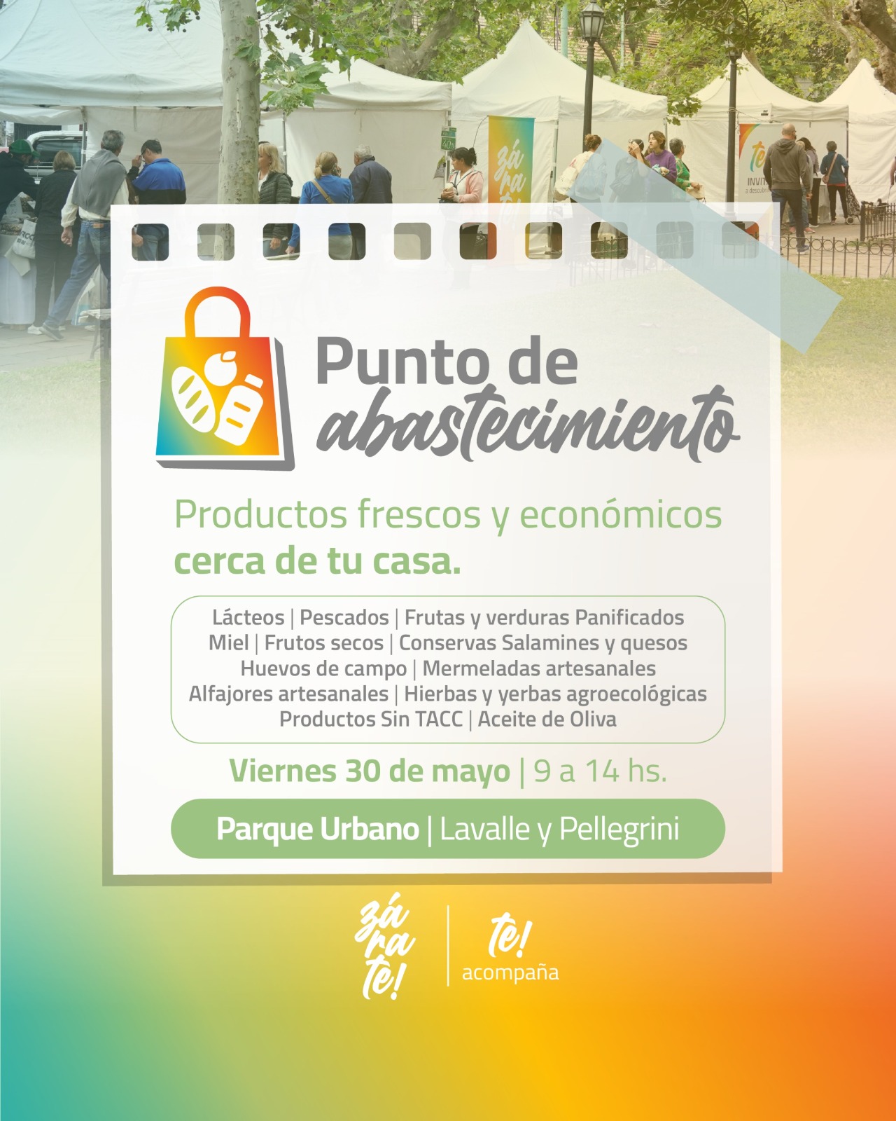 El viernes 30 de mayo de 9 a 14 hs, Punto de Abastecimiento estará en el Parque Urbano de Zárate (Lavalle y Pellegrini).