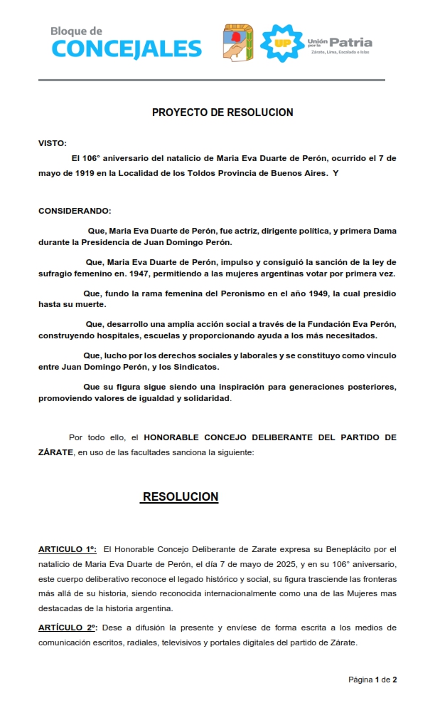 En la última sesión legislativa, el bloque de Unión por la Patria presentó el Expediente 134/25, solicitando declarar el ‘beneplácito por el natalicio’ de Eva Duarte de Perón. Sí, leyeron bien: no un homenaje, no un recuerdo, no una evocación. Un beneplácito por haber nacido. Como si el cuerpo deliberativo pudiera emitir una especie de certificado de aprobación celestial.